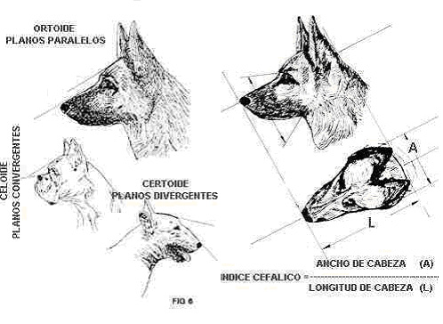 Em função de que a largura da cabeça seja menor, igual ou maior que a metade do comprimento da cabeça. O PASTOR ALEMÃO é um MESOCEFALO, quer dizer a largura da cabeça deve ser igual à metade do comprimento da mesma.