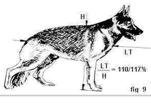 Mais importante que a altura apenas é a proporção da altura em relação ao comprimento do tronco, que deve estar compreendida entre 110% e 117 % da altura da cernelha.